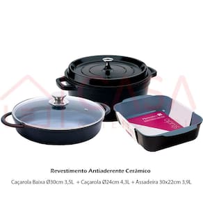1 Caçarola Baixa Hercules 30cm 3,5 Litros Preta;