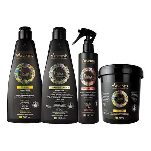 Kit cachos arvensis day after+ativ.Crespos+masc.2x1+co-washNeste anúncio contém:1 unidade condicionador co-wash arvensis 300ml1 unidade ativador cachos crespos e crespíssimos arvensis 300ml 1 unidade spray day after arvensis 250ml1 unidade mascara cachos 2x1 arvensis 450gCondicionador co-wash arvensisCondicionador limpante com anfótero, permitindo uma limpeza suave e eficiente, além de preservar a integridade e a oleosidade natural dos cabelos. Substitui o uso do shampoo. 300 ml - ph 4,0 - 4,5Indicação: indicado para todos os cachos praticantes da técnica sem shampoo no poo .Principais ativos: óleo de coco; colágeno vegetal; vitamina e.Ativadorcachos crespos e crespissimos arvensisO ativador de cachos crespos e crespíssimos foi desenvolvido para definir a ondulação, possui ação protetora, resistência, formação de filme, controle de frizz, mantendo a umidade natural e definindo cachos radiantes. Contém filtro solar. 300ml - ph 3,5 - 4,5Indicação: cabelos crespos e crespíssimos 3b / 3c / 4a / 4b / 4c .Principais ativos: óleo de coco; colágeno vegetal; abacate.Spray day after arvensisOs cabelos cacheados, muitas vezes, sofrem com o aspecto amassado, o frizz excessivo e a perda da definição dos cachos. Pensando nisso, a arvensis desenvolveu o day after, um spray com efeito memória que confere ultra definição aos cabelos, além de promover hidratação, elasticidade, controle do frizz, brilho e maciez. Com uma formulação enriquecida com filtro solar, protege os cabelos da ação nociva dos raios uv e da oxidação que leva ao envelhecimento precoce dos fios. 250ml ph 3,5 4,5Indicação: todos os cachos.Principais ativos: água de coco; colágeno vegetal; filtro solar.Máscara cachos 2x1 arvensisA máscara cachos naturais 2x1 foi desenvolvida para atuar como hidratante e finalizador para cabelos crespos e crespíssimos. Elaborado através da perfeita combinação de óleo de coco, colágeno vegetal, abacate e vitamina e, a máscara proporciona inúmeros benefícios como nutrição avançada, reparação dos fios danificados, alta hidratação, maciez e brilho extra.Sua ação protetora e multifuncional - enriquecida com filtro solar - ainda confere resistência, formação de filme e controle de frizz, além de manter a umidade natural para cachos nutridos e radiantes. Ideal para ser utilizada na técnica sem shampoo.Principais ativos:- óleo de coco: alto poder umectante e hidratante, repõe nutrientes e age na diminuição do frizz. Ainda tem ação de selamento de cutículas evitando pontas duplas.- colágeno vegetal: fornece aminoácidos e proteínas para nutrição funcional da fibra, promove hidratação e restaura a elasticidade dos fios. Forma um filme flexível ultra substantivo que protege e define os cachos, além de atuar no controle do frizz.-abacate: o extrato natural de abacate possui propriedades emolientes que promovem hidratação profunda, nutrição e vitalidade aos cabelos.-ph: 3,5-4,5Indicação: cabelos crespos e crespíssimos 3b / 3c / 4a / 4b / 4c .