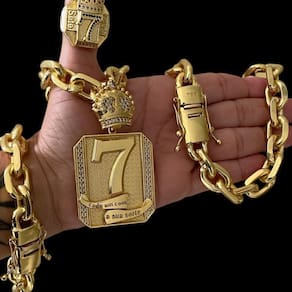 Kit Cadeado 18mm + Placa 7 + Anel Coroa Banhado a Ouro Detalhes do Produto: Material: ligas metálicas de alta qualidade, especialmente tratadas para fixação e absorção do ouro, com acabamento em verniz protetor. Aparência: visual idêntico ao ouro maciço. Produção: artesanal, com atenção meticulosa aos detalhes. Banho: 10 camadas espessas de ouro 18k, finalizadas com verniz antialérgico . Elos: soldados varia conforme o modelo . Pedras: zircônias brilhantes cravejadas quando aplicável . Tamanhos Disponíveis: Cordões Masculinos: 70cm padrão e 60cm sob consulta/Pedido Via Chat . Cordões Femininos: 50cm padrão e 45cm sob consulta/Pedido Via Chat . Pulseiras: 21cm padrão ; tamanhos de 18cm a 23cm sob consulta/Pedido Via Chat. Pingentes: conforme imagens; consulte para mais detalhes via chat. Espessuras Recomendadas para Cordões / Pingentes: P: 1mm a 4mm M: 4mm a 8mm G: 6mm a 13mm Gg: 12mm a 18mm Incluso na Compra: Saquinho de organza para armazenamento seguro. Caixa elegante, perfeita para presente. Cupom de desconto para a próxima compra. Flyer com outros produtos da coleção. Carta de agradecimento personalizada. Adesivo da marca ToJoia18k. Informações Adicionais: : 6 meses termos acompanham o produto . Devolução: 7 dias para devolução sem questionamentos. Envio: despacho em até 24 horas úteis após confirmação do pagamento. Cuidados com a Peça: Evite contato com produtos químicos; aguarde o perfume secar antes de usar. Evite contato com shampoo, condicionadores e suor excessivo. Armazene em local seco, preferencialmente no saquinho de organza fornecido. Uso no mar e piscina é permitido; lave com água corrente e sabão neutro após. Por que Escolher a ToJoia18k Semi-joias luxuosas que combinam estilo, qualidade e sofisticação. Banho espesso de ouro 18k, garantindo brilho duradouro e acabamento impecável. Design exclusivo e produção artesanal, perfeitos para qualquer ocasião. Materiais premium que asseguram durabilidade. Ao escolher uma semi-joia ToJoia18k, você investe em qualidade, elegância e uma experiência única. Aguardamos sua compra Observação: pode ocorrer variação no fecho raramente . Imagens reais, sem edição. Qualquer dúvida, estamos à disposição para esclarecimentos.