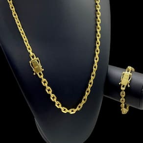 Kit Cadeado 7mm Fecho 750 Banhado a Ouro 18K Detalhes do Produto: Material: ligas metálicas de alta qualidade, especialmente tratadas para fixação e absorção do ouro, com acabamento em verniz protetor. Aparência: visual idêntico ao ouro maciço. Produção: artesanal, com atenção meticulosa aos detalhes. Banho: 10 camadas espessas de ouro 18k, finalizadas com verniz antialérgico . Elos: soldados varia conforme o modelo . Pedras: zircônias brilhantes cravejadas quando aplicável . Tamanhos Disponíveis: Cordões Masculinos: 70cm padrão e 60cm sob consulta/Pedido Via Chat . Cordões Femininos: 50cm padrão e 45cm sob consulta/Pedido Via Chat . Pulseiras: 21cm padrão ; tamanhos de 18cm a 23cm sob consulta/Pedido Via Chat. Pingentes: conforme imagens; consulte para mais detalhes via chat. Espessuras Recomendadas para Cordões / Pingentes: P: 1mm a 4mm M: 4mm a 8mm G: 6mm a 13mm Gg: 12mm a 18mm Incluso na Compra: Saquinho de organza para armazenamento seguro. Caixa elegante, perfeita para presente. Cupom de desconto para a próxima compra. Flyer com outros produtos da coleção. Carta de agradecimento personalizada. Adesivo da marca ToJoia18k. Informações Adicionais: : 6 meses termos acompanham o produto . Devolução: 7 dias para devolução sem questionamentos. Envio: despacho em até 24 horas úteis após confirmação do pagamento. Cuidados com a Peça: Evite contato com produtos químicos; aguarde o perfume secar antes de usar. Evite contato com shampoo, condicionadores e suor excessivo. Armazene em local seco, preferencialmente no saquinho de organza fornecido. Uso no mar e piscina é permitido; lave com água corrente e sabão neutro após. Por que Escolher a ToJoia18k Semi-joias luxuosas que combinam estilo, qualidade e sofisticação. Banho espesso de ouro 18k, garantindo brilho duradouro e acabamento impecável. Design exclusivo e produção artesanal, perfeitos para qualquer ocasião. Materiais premium que asseguram durabilidade. Ao escolher uma semi-joia ToJoia18k, você investe em qualidade, elegância e uma experiência única. Aguardamos sua compra Observação: pode ocorrer variação no fecho raramente . Imagens reais, sem edição. Qualquer dúvida, estamos à disposição para esclarecimentos. Marca: Não Informado