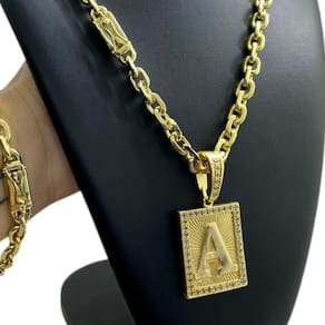 Kit Cadeado 8mm + Pingente Letra Cravejado Banhado Ouro Detalhes do Produto: Material: ligas metálicas de alta qualidade, especialmente tratadas para fixação e absorção do ouro, com acabamento em verniz protetor. Aparência: visual idêntico ao ouro maciço. Produção: artesanal, com atenção meticulosa aos detalhes. Banho: 10 camadas espessas de ouro 18k, finalizadas com verniz antialérgico . Elos: soldados varia conforme o modelo . Pedras: zircônias brilhantes cravejadas quando aplicável . Tamanhos Disponíveis: Cordões Masculinos: 70cm padrão e 60cm sob consulta/Pedido Via Chat . Cordões Femininos: 50cm padrão e 45cm sob consulta/Pedido Via Chat . Pulseiras: 21cm padrão ; tamanhos de 18cm a 23cm sob consulta/Pedido Via Chat. Pingentes: conforme imagens; consulte para mais detalhes via chat. Espessuras Recomendadas para Cordões / Pingentes: P: 1mm a 4mm M: 4mm a 8mm G: 6mm a 13mm Gg: 12mm a 18mm Incluso na Compra: Saquinho de organza para armazenamento seguro. Caixa elegante, perfeita para presente. Cupom de desconto para a próxima compra. Flyer com outros produtos da coleção. Carta de agradecimento personalizada. Adesivo da marca ToJoia18k. Informações Adicionais: : 6 meses termos acompanham o produto . Devolução: 7 dias para devolução sem questionamentos. Envio: despacho em até 24 horas úteis após confirmação do pagamento. Cuidados com a Peça: Evite contato com produtos químicos; aguarde o perfume secar antes de usar. Evite contato com shampoo, condicionadores e suor excessivo. Armazene em local seco, preferencialmente no saquinho de organza fornecido. Uso no mar e piscina é permitido; lave com água corrente e sabão neutro após. Por que Escolher a ToJoia18k Semi-joias luxuosas que combinam estilo, qualidade e sofisticação. Banho espesso de ouro 18k, garantindo brilho duradouro e acabamento impecável. Design exclusivo e produção artesanal, perfeitos para qualquer ocasião. Materiais premium que asseguram durabilidade. Ao escolher uma semi-joia ToJoia18k, você investe em qualidade, elegância e uma experiência única. Aguardamos sua compra Observação: pode ocorrer variação no fecho raramente . Imagens reais, sem edição. Qualquer dúvida, estamos à disposição para esclarecimentos. Marca: Não Informado Ean: 7891296211118