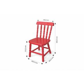 Cadeira infantil com resistência e durabilidade, excelente acabamento em pintura laqueado PU, estrutura em madeira maciça suportando o peso de um adulto, se torna ideal para interagir com as crianças. Altura do assento até o chão: 31 Altura do Encosto: 29,5 Ambiente Principal: Quarto Infantil Conforto PNE: Sim Cor: Vermelho Cor do Produto: Vermelho Cores Secundárias: Vermelho Escala de Brilho: Semi-Fosco Idade Recomendada: Todas as Idades Itens Inclusos: 2 Cadeiras Lavável: Não Manual de Montagem e Instalação: https://cdn2.madeiramadeira.com.br/atributo/ecomoveis/414635-sem-manual.pdf Material Principal: Madeira Maciça Necessita Montagem: Não Origem do Produto: Nacional Peso: 5 kg Possui Certificado: Não Proteção UV: Sim Quantidade de Pés: 04 Recomendações de Uso, Manutenção e Limpeza: Pano úmido sem produtos químicos Resistência à Chuva: Não Suporta Até (kg): 80 kg
