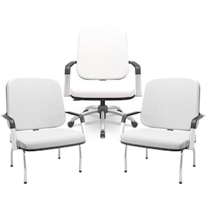 Transforme seu ambiente com o Kit 01 Cadeira de Escritório Giratória e 02 Cadeiras Fixas Magno Base Cromada, da Lyam Decor, especialmente desenvolvido para oferecer conforto e suporte excepcionais a todos.