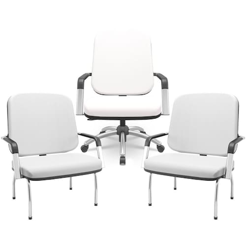 Cada peça combina um design moderno e robusto, projetado para atender às necessidades de pessoas sobrepeso, sem comprometer o estilo. As cadeiras fixas garantem estabilidade e apoio em momentos de conversa ou trabalho, enquanto a cadeira giratória oferece a liberdade de movimento e versatilidade, perfeita para dinâmicas de escritório. Todas com tapeçaria de alta densidade e acabamentos de qualidade, a fim de promover uma experiência de uso agradável e segura.