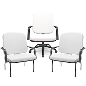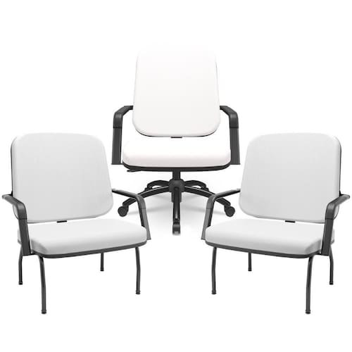 Cada peça combina um design moderno e robusto, projetado para atender às necessidades de pessoas sobrepeso, sem comprometer o estilo. As cadeiras fixas garantem estabilidade e apoio em momentos de conversa ou trabalho, enquanto a cadeira giratória oferece a liberdade de movimento e versatilidade, perfeita para dinâmicas de escritório. Todas com tapeçaria de alta densidade e acabamentos de qualidade, a fim de promover uma experiência de uso agradável e segura.