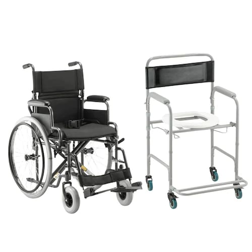 mobilidade reduzida.Composto por uma cadeira de rodas robusta e uma cadeira de banho higiênica dobrável, este conjunto