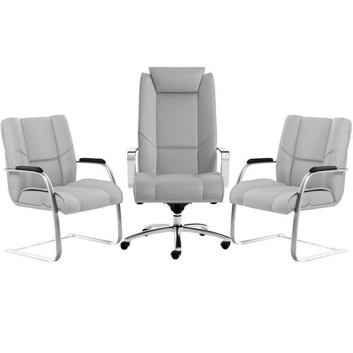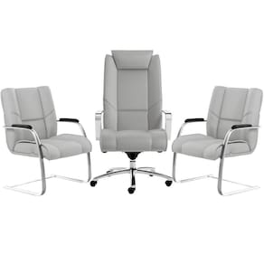Trabalho, estudos e atividades corporativas, seja no escritório ou home office, precisam ser realizados com conforto e ergonomia para alcançarmos um bom desempenho. Pensada justamente para isso o Kit Cadeira Presidente Com 02 Cadeiras Fixas New Onix F02 Tecido Sintético Cinza - Lyam Decor é a melhor opção para suprir suas necessidades e superar todas as expectativas.