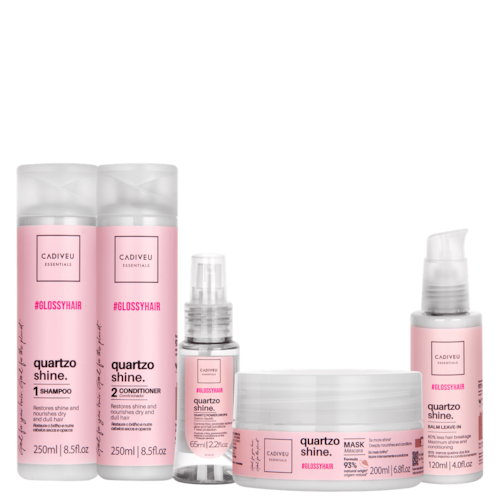 O Kit Cadiveu Essentials Quartzo Shine by Boca Rosa Hair Tratamento Intensivo oferece um cuidado profundo para restaurar o brilho dos fios mais secos e opacos, proporcionado maciez e leveza aos cabelos. Composto por shampoo, máscara, finalizador balm leave-in e quartzo líquido. É um tratamento que limpa suavemente, enquanto promove nutrição que não impacta na purificação dos fios, nutre e condiciona facilitando o desembaraço e dando maciez aos fios. com uma finalização perfeita para selar as cutículas e promover proteção prolongada com pontas reparadas.