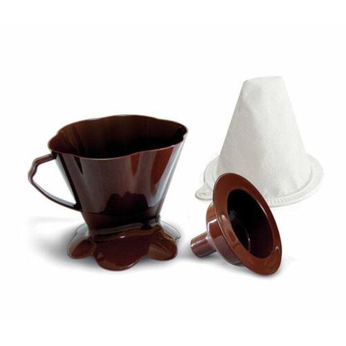 Kit cafe permanente 3 peças Produto de uso diário Excelente qualidade Ótimo para preparo cafe quentinho e com sabor Mantem o sabor do cafe e organiza sua cozinha Medidas 13 x 12 Itens inclusos 01 filtro para café, 01 funil e 01 coador Coador nylon 103 Suporte coador nylon 103 Funil plastico para adaptar em garrafas térmica Ficha técnica - NUMERO: 103 - cor: marrom Ean: 978969002208