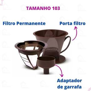 O kit também conta com um porta-filtro tamanho 103, que se encaixa perfeitamente no filtro permanente. Com ele, você terá toda praticidade na hora de preparar o seu café.