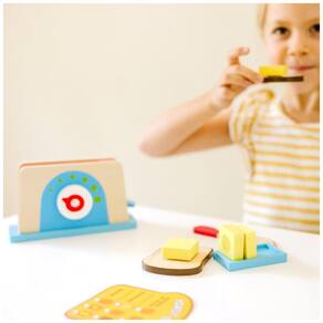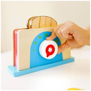 Este conjunto de torradeira de manteiga para pão de madeira é perfeito para as crianças que adoram brincar de chef Com ele, é possível preparar uma ou duas torradas em diferentes níveis de escuridão. O conjunto inclui uma torradeira de madeira, 2 fatias de pão, 4 pedaços de manteiga, uma manteigueira, uma faca e um cartão de atividades reutilizável que permite fazer e receber pedidos especiais.
