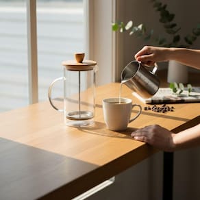 Preparo de café fresco, aromático e saboroso na Prensa Francesa Possibilidade de criar cappuccinos, lattes e outras bebidas com a jarra barista Design elegante com acabamento em bambu e inox. Fácil de usar e limpar. Ótima opção para uso doméstico ou como presente para amantes de café