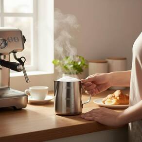 Produzida em aço inoxidável de alta durabilidade Ideal para vaporização e preparo de espuma de leite Capacidade: 350ml Alça firme e confortável para manuseio seguro