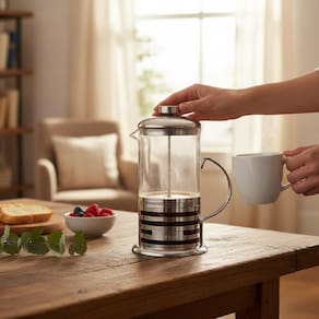 O Kit Café com Cafeteira Francesa e Jarra Barista é ideal para quem aprecia praticidade e sabor no preparo de bebidas. A Cafeteira Francesa em Inox proporciona extração completa do café ou chá, mantendo o aroma e os óleos naturais do grão. Já a Jarra Barista de Aço Inox 350ml é perfeita para aquecer e vaporizar leite, criando a espuma cremosa ideal para cappuccinos, lattes e outras receitas.