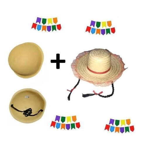 Contém no kit:1 Barriga postiça falsa1 Chapéu de palha com tranças sortidoBarrigaMaterial barriga: EVACor barriga: BegeMedidas 36cm de diam X 13cm de alturaTamanho barriga parte da frente: 55cmBem resistenteFoto Real do produto enviado. Chapéu com tranças sortidoMaterial: PalhaCabelo: sintéticoTamanho: Aproximadamente 32cm x 10cmIdeal para compor sua fantasia de caipira, fazendeiro, festa junina, são joão, carnaval.