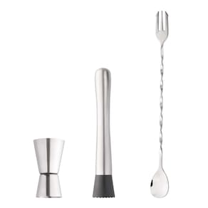 Kit Caipirinha com Colher Bailarina, Dosador Duplo e Macerador em Inox - Wolff