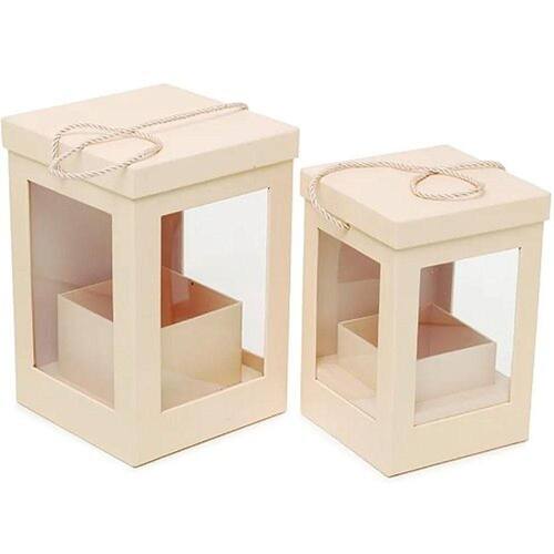 Material: Papel kraft e cordão.Medidas das Caixas:Tamanho P: 16 cm x 16 cm x 26 cmTamanho G: 19,5 cm x 19,5 cm x 29 cm
