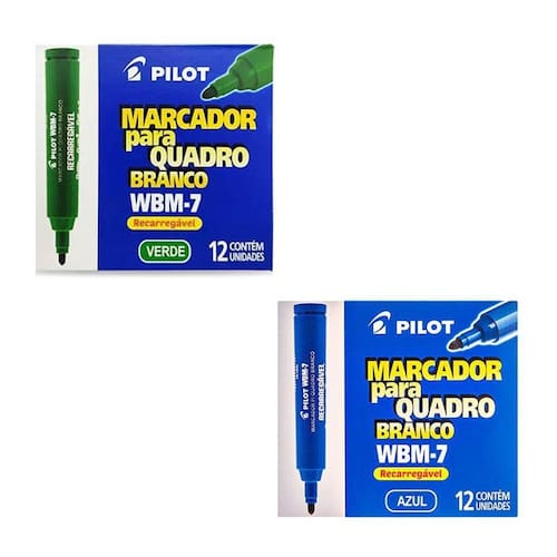 O Kit Caixa de Pincel Marcador para Quadro Branco Recarregável WBM-7 24 Unidades Verde e Azul desenvolvido pela Pilot é ideal para ambientes profissionais e educacionais, pois os marcadores recarregáveis oferecem traços precisos e cores vibrantes, perfeitos para apresentações e anotações em quadros brancos, não perca mais tempo e aproveite!