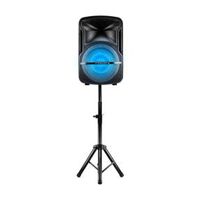 O kit acompanha tripé metálico, microfone sem fio de longo alcance e uma caixa de som de 670W RMS.