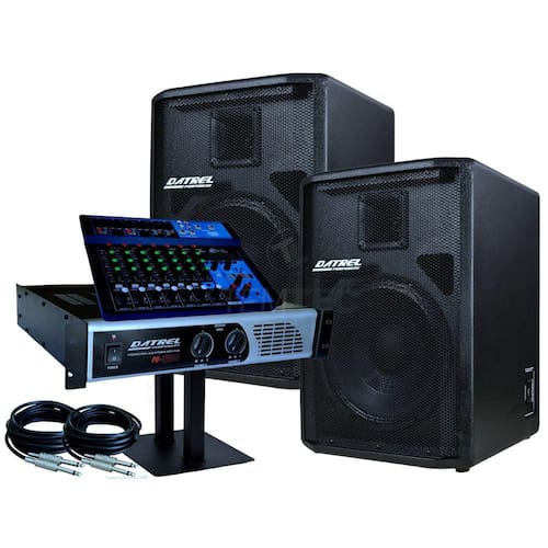 -Alto falante: 12” e tweeter ou driver titanium(1 falante 12" e 1 corneta)