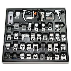 Kit calcadores multifuncional maq costura domestica 42 pçs Kit com 42 calcadores para máquina de costura doméstica + haste baixa de troca rápida Você é costureira Então entende a importância de ter um calcador na sua máquina. Se ainda não conhece essa pecinha quase mágica eu vou te explicar a necessidade dele, e logo vai colocar um kit em seus acessórios. Os calcadores são utilizados para unir tecidos, com a peça ideal é possível fazer bainha, colocar zíper, bordar. Enfim você pode fazer uma infinidade de coisas e deixar seu dia mais pratico. - tendo a haste, servirá em todas as marcas, exceto as mini e pretinha , na dúvida faça uma pergunta. - o calcador de overloque é sem corte, sem faca. Compatível com as marcas: - singer elgin, janome, brother, elna, elgin, sun special doméstica , etc. Este kit nao é recomendado para maquinas industriais Composição do kit veja cada um dos itens abaixo nas fotos do anúncio Peças do kit: 1- calcador com ponta guia 2- calcador padrão 3- calcador para caseadinho aplicação-metal 4- calcador de zíper 5- calcador de botão 6- calcador plastico zíper invisivel 7- calcador caseadinho aplicação curva 8- calcador para miçangas, perolas, strass 9- calcador máquina de costura 10- calcador para pontos decorativos 11- calcador 6mm rolo de rendas 12- calcador zig zag de teflon 13- calcador para caseadinho aberto ferro 14- calcador de abertura grande 15- calcador para acordeamento 16- calcador 1/4 de polegadas 17- calcador para fitas/lantejoulas 18- calcador padrão 19- calcador para quilting reto 20- calcador quilting 1/4 com guia 21- calcador para acabamento chuleado 22- calcador para acordoamento 5 furos 23- calcador para acordoamento 7 furos 24- calcador p/unir tecidos/ quilting na vala 25- calcador para e cordão 26- calcador para zíper invisível 27- calcador para franja 28- calcador para viés 29- calcador para franzir 30- calcador para barra 3mm 31- calcador para barra 6mm 32- calcador para barra 1/8 33- calcador para vinil e couro 34- calcador para miçangas 35- calcador para casa de botão 36- calcador para quilting livre 37- calcador para bainha invisível 38- calcador para quilting com mola 39- calcador zíper com regulagem 40- calcador para malha 41- calcador p/friso ou nervura 9mm 42- calcador p/friso ou nervura 7mm - novo, na caixa estojo Marca: Não Informado Ean: 7906876536007