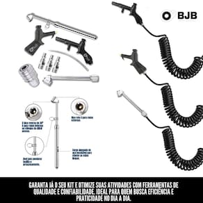 Kit de Acessórios para Compressor de Ar - Completo para Diversas Aplicações Este kit completo de acessórios para compressor de ar é ideal para quem busca versatilidade e eficiência em suas atividades diárias. Inclui: 1 Ferramenta de aplicação de ar com bico curto 1 Ferramenta de aplicação de ar com bico alongado 3 Conectores engate rápidos macho 1 Engate Rápido 1/4 com rosca 1/4 1 Inflador 150mm com rosca 1/4 1 Calibrador Pneu 150 Lbs Caminhão Profissional Aplicações: - Limpeza de superfícies e equipamentos Encher pneus e infláveis Conectar e desconectar mangueiras de ar rapidamente Compatibilidade: ideal para uso em oficinas, garagens e indústrias Compatível com a maioria dos compressores de ar disponíveis no mercado Características: alta resistência e durabilidade Fácil de usar e instalar Versatilidade para diversas tarefas Garanta já o seu kit e otimize suas atividades com ferramentas de qualidade e confiabilidade. Ideal para quem busca eficiência e praticidade no dia a dia.