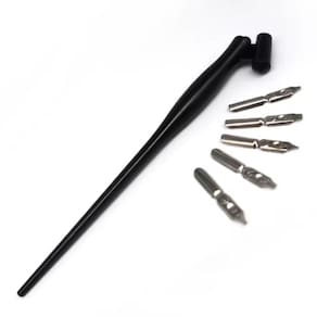 Código do produto: gn2659 Kit completo para caligrafia artística e escrita fina. Ideal para iniciantes, estudantes de arte, designers e entusiastas da escrita manual. Possui 1 caneta tinteiro tipo pena e 5 pontas de diferentes espessuras para traços variados e precisos. Características: