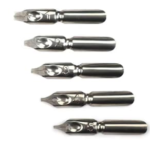 Possui 1 caneta tinteiro tipo pena e 5 pontas de diferentes espessuras para traços variados e precisos.