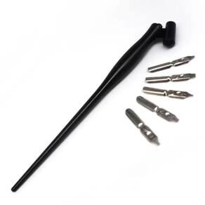 Possui 1 caneta tinteiro tipo pena e 5 pontas de diferentes espessuras para traços variados e precisos.