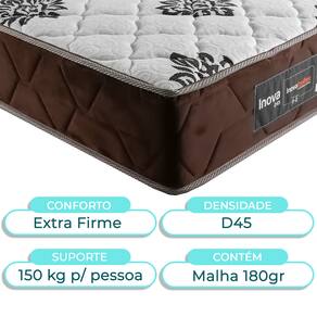 Conjunto Casal Colchão Inova D45 + Cama Box Bau + CabeceiraO Colchão Inova D45 possui 26 cm de altura e oferece suporte extra firme, ideal para quem busca maior sustentação e estabilidade durante o descanso. Sua espuma de densidade D45 proporciona alta resistência e durabilidade no uso diário.Base baú casal com 37cm de altura e amplo espaço interno para organizaçãoRevestimento em Veludo , fácil de limpar e com visual modernoEstrutura reforçada com capacidade para até 150KgFicha Técnica Colchão:Modelo: Inova D45Marca: InovaflexTamanho: CasalTecido: Malha 180grEnchimento: EspumaDensidade: D45Largura: 138cmComprimento: 188cmAltura: 26cmSuporte de Peso: 150KgGarantia: 6 MesesFicha Técnica Cama Box Bau:Modelo: PopMarca: NatureTamanho: CasalTecido: VeludoCor: CinzaLargura: 138cmComprimento: 188cmAltura: 30cmAltura dos Pés: 7cmMaterial dos Pés: MadeiraSuporte de Peso: 150KgPeso: 35KgGarantia: 3 MesesFicha Técnica Cabeceira:Modelo: FitMarca: NatureTamanho: CasalTecido: VeludoLargura: 138cmComprimento: 10cmAltura: 136cmCor: CinzaGarantia: 3 MesesAtenção:Antes da compra certifique-se de que o produto passa por elevadores, portas e corredores.As transportadoras não realizam entregas por escadas ou içamentos.Caso o item não caiba no elevador, a entrega será considerada concluída no térreo do prédio.A cor e tonalidade do produto pode variar de acordo com o dispositivo que o usuário está acessando. Marca: Não Informado