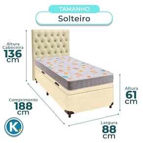 Conjunto Solteiro Colchão D20 + Cama Box BauColchão solteiro padrão com 12cm de altura, ideal para uso leve e versátilTecido em poliéster com toque macio e fácil manutençãoSuporta até 40kg, indicado para crianças ou uso ocasionalBase baú solteiro com 42cm de altura e amplo espaço interno para organizaçãoRevestimento em Material Sintético resistente, fácil de limpar e com visual modernoEstrutura reforçada com capacidade para até 150KgFicha Técnica Colchão:Modelo: D20Marca: InducolTamanho: SolteiroTecido: PoliésterLargura: 88cmComprimento: 188cmAltura: 12cmSuporte de Peso: 40KgGarantia: 3 MesesFicha Técnica Cama Box Bau:Modelo: EliteMarca: NatureTamanho: SolteiroTecido: Material Sintético Largura: 88cmComprimento: 188cmAltura: 35cmAltura dos Pés: 7cmMaterial dos Pés: MadeiraSuporte de Peso: 150KgPeso: 22KgGarantia: 3 MesesAtenção:Antes da compra certifique-se de que o produto passa por elevadores, portas e corredores.As transportadoras não realizam entregas por escadas ou içamentos.Caso o item não caiba no elevador, a entrega será considerada concluída no térreo do prédio.A cor e tonalidade do produto pode variar de acordo com o dispositivo que o usuário está acessando.