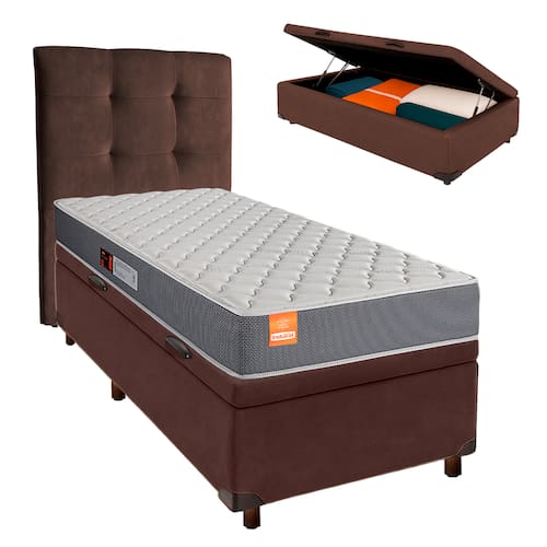 Kit Cama Box Bau + Cabeceira + Colchão Solteiro D23 - Pro - Inducol - Marrom