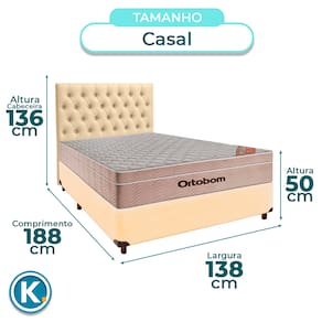 Conjunto Casal Colchão Airtech + Cama BoxColchão Ortobom Casal com 25cm de altura, ideal para conforto no uso diárioTecido em poliéster que garante toque suave e boa ventilaçãoSuporte de até 120kg, ideal para diferentes biotipos com firmeza balanceadaBase box casal ideal para otimizar o espaço do quarto com praticidadeRevestimento em Material Sintético: fácil de limpar e com visual modernoEstrutura firme e resistente com suporte para até 150kgFicha Técnica Colchão:Modelo: AirtechMarca: OrtobomTamanho: CasalTecido: PoliésterLargura: 138cmComprimento: 188cmAltura: 25cmSuporte de Peso: 120KgGarantia: 3 MesesFicha Técnica Cama Box:Modelo: UniversalMarca: NatureTamanho: CasalTecido: Material Sintético Largura: 138cmComprimento: 188cmAltura: 25cmAltura dos Pés: 13cmMaterial dos Pés: MadeiraSuporte de Peso: 150KgPeso: 27KgGarantia: 3 MesesAtenção:Antes da compra certifique-se de que o produto passa por elevadores, portas e corredores.As transportadoras não realizam entregas por escadas ou içamentos.Caso o item não caiba no elevador, a entrega será considerada concluída no térreo do prédio.A cor e tonalidade do produto pode variar de acordo com o dispositivo que o usuário está acessando.