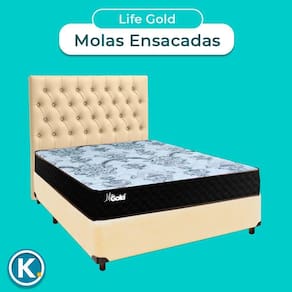 Kit Cama Box + Cabeceira + Colchão Casal Molas Ensacadas - Life Gold - Paropas