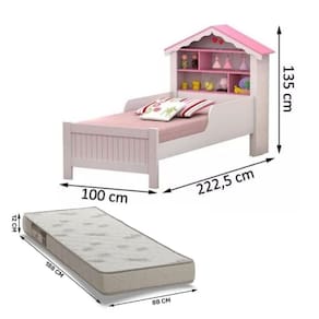 Cama Casinha de Princesa (em 100% MDF) Mesa de Cabeceira Flex Color (em MDP, 2 gavetas) Colchão de Solteiro (padrão)
