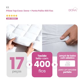 01 Pillow, Capa e Protetor de Colchão Casa Dona Top 400 Fios Percal Hipoalérgico Super Macio Solteiro, Casal, Queen e King