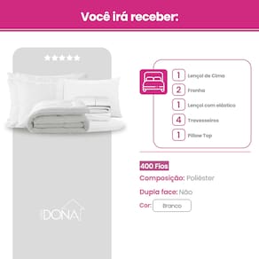 01 Pillow, Capa e Protetor de Colchão Casa Dona Top 400 Fios Percal Hipoalérgico Super Macio Solteiro, Casal, Queen e King