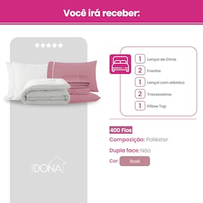 01 Pillow, Capa e Protetor de Colchão Casa Dona Top 400 Fios Percal Hipoalérgico Super Macio Solteiro, Casal, Queen e King