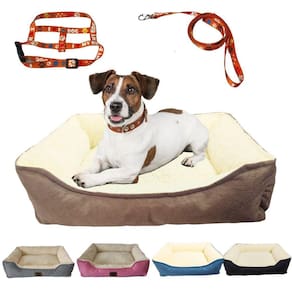 Kit Cama Peluciada Confort 50X40 Cm E Coleira Peitoral Pet Cor: Marrom-claro Seja Bem Vindo a Loja Oficial da Dog Cat Store.