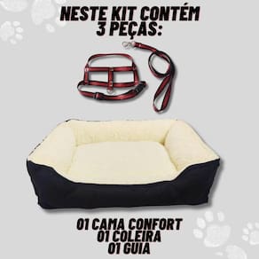 Kit Cama Peluciada Confort 50X40 Cm E Coleira Peitoral Pet Cor: Preto Seja Bem Vindo a Loja Oficial da Dog Cat Store.