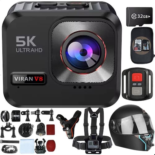 A Câmera Esportiva v8 5k com Estabilizador de Imagem, chega trazendo muitas novidades e atualizações em relação aos modelos anteriores, com gravação de vídeo na resolução de 5k (5120 x 2880 pixels) e dispondo de estabilização de imagem eletrônico (EIS), com sensor IMX386, sendo utilizado algoritmo de compensação de imagem cruzada para compensar a mudança e produzir vídeos estáveis, permitindo que estabilize a câmera, e obtendo vídeos e fotos cinematográficas suaves, fluidas. Dispõe de lente com 160º grande angular, proporcionando um extenso ângulo de visibilidade, e microfone integrado que possibilita captar áudio durante as gravações. A prova d’água permitindo o uso subaquático até 5 metros de profundidade ou em dias de chuva, contando ainda com controle remoto e diversos acessórios inclusos.