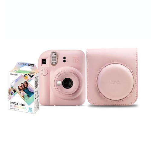 Este kit é composto por uma câmera Instax Mini 12 na cor rosa gloss, um pack de filmes Instax Mini Mermaid Tail com 10 fotos e uma linda bolsa oficial Instax Mini 12 com alça, feitas em couro sintético, combinando com a cor da câmera. A bolsa é modelada exclusivamente para o modelo Mini 12 da Instax e acomoda a câmera perfeitamente!