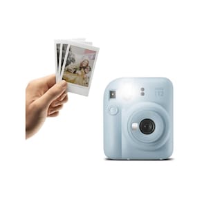 Kit Câmera Instax Mini 12 Azul Bolsa Filme Fotos Reveladas Instantâneas Presente Retrô Spray Art