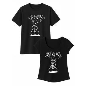 Kit Camisetas Casal Namorados Amarradinhos Com Sacolinha de Presente - Preto - G