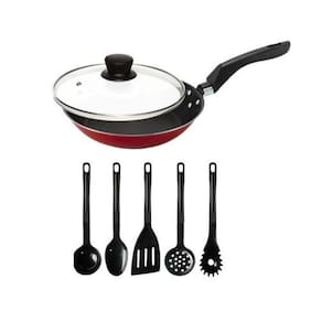 Kit canecão antiaderente teflon e jogo de utensílios de cozinha cor vermelho
