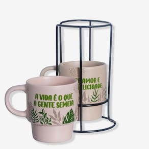Depois de um dia cheio de aventuras incríveis com quem você ama, vocês precisam de uma mãozinha na hora de tomar aquele cafezinho A gente te ajuda Com essa dupla seu café está a salvo, com 180ml cada e feitas em cerâmicas, é o match perfeito para salvar a sua tardeO produto é , feito em cerâmica e possui detalhe incríveis que vão fazer vocês se apaixonarem Se você precisa de uma mãozinha na hora do café, a gente te ajuda Essa dupla vai salvar a sua tarde, com 180ml de capacidade, possui o tamanho exato para os amantes de café Com alça ergonômica, base empilhável, além de acompanhar um suporte que facilita na hora de guardá-las Não importa se é no café da tarde ou da manhã, essa caneca te acompanha em todas as suas aventurasEspecificações:Altura: 8cm Comprimento: 7cm Largura: 7cm Material: Aço e cerâmica Capacidade: 180mlCuidados e recomendações de uso:Lavar com água, esponja macia e detergente neutro.Não vai ao micro-ondas, nem a lava-louças.Não utilizar químicos e abrasivos.Choques ou quedas podem trincar ou quebrar o produto, pois trata-se de um produto de cerâmica.