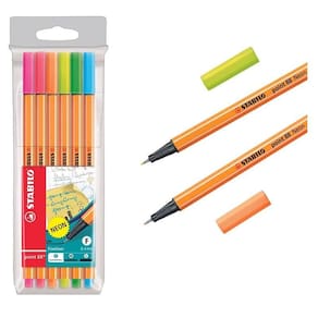 Kit Caneta Fineliner 0.4mm Point 88 6 Cores Neon - Stabilo