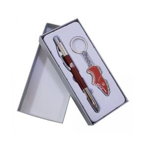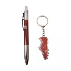 Kit composto por caneta roller ball e chaveiro em formato de chuteira. Ambos os itens são feitos de metal. A caneta é customizada com as cores do time Náutico. Acompanha caixa de papel pronta para presente.