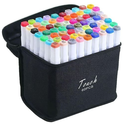 Conjunto de 60 canetas marcadoras de ponta dupla, esboço de caneta de ponta dupla.