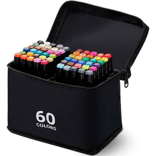O kit inclui marcadores com pontas duplas, totalizando uma variedade de pontas diferentes. Esses marcadores são à base de álcool, livres de odor, tornando-os adequados até mesmo para uso infantil.